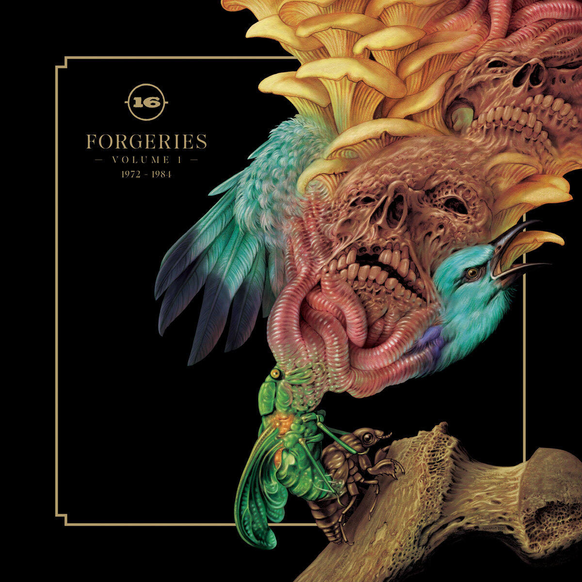 On their 11th long-playing record: Forgeries (72-84), -(16)- return to the impulse that first dragged them into loud rooms and bad ideas: the urge to steal what we love and make it semi-unrecognizable through devotion. We have partnered with Heavy Psych Sounds Records to release a collection of covers that function less as homage and more as a possession to be given away. The artwork, rendered by the ever-amazing Marald, completes the ritual, iconic, unsettling, and unafraid.